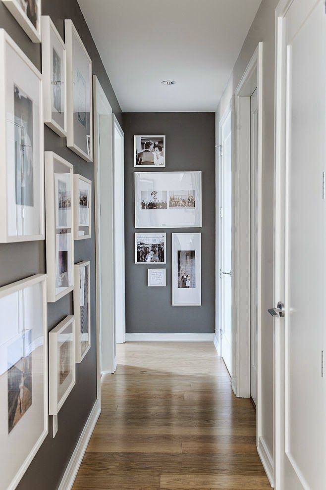 Possiamo anche trasformare il corridoio in un angolo dei ricordi appendendo foto di famiglia. Utilizzando cornici dello stesso colore si ha un effetto molto elegante; oppure potete creare una libreria che richiede poca profondità e risolve il problema di dove riporre tutti i vostri libri.