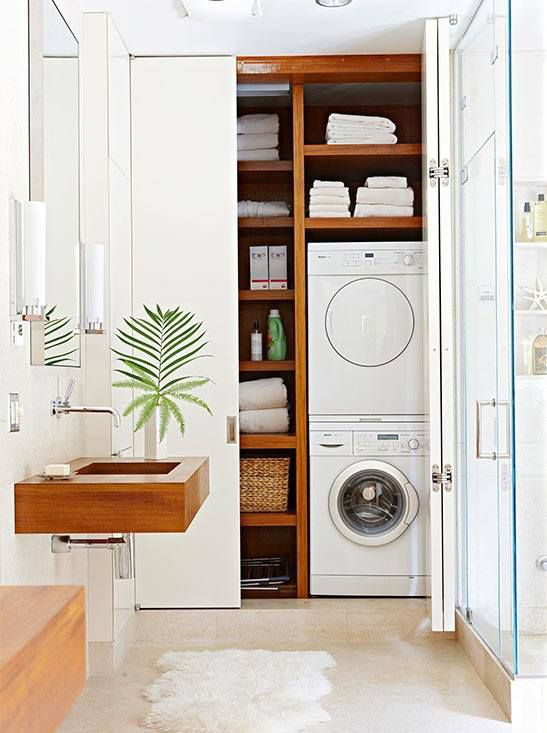 Questo spazio non deve essere per forza una stanza; può essere un piccolo antibagno oppure è possibile sfruttare una parte del corridoio dove ovviamente "nascondere" la lavatrice.