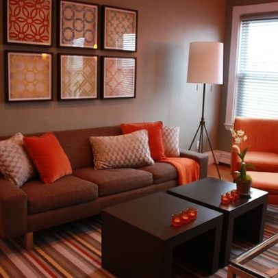 In questo caso a prima vista l'accostamento di colori sembra perfetto ma c'è qualcosa che stona. Avendo una stanza poco luminosa ed una parete scura l'uso dei colori aranciati scurisce ancora di più la stanza. In questo caso basterebbe dare luminosità cambiando colore alla parete, scegliere un tavolino più chiaro o cambiare il colore del rivestimento della poltrona.