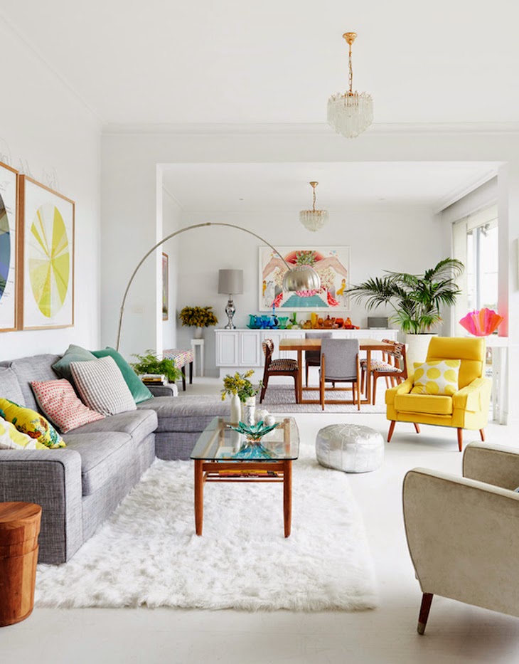 Il mio consiglio è di creare una "base" dell'arredamento di un colore "neutro"; per neutro intendo un colore sempre attuale e che abbia varie possibilità di abbinamento. Questa "base" sarà poi ravvivata attraverso l'uso dei tessuti e degli accessori. Cuscini, tende, tappeti, coperte, copriletti ecc. sono in grado di cambiare aspetto alla vostra casa e possono essere sostituiti spesso senza prosciugare le vostre finanze!!!!