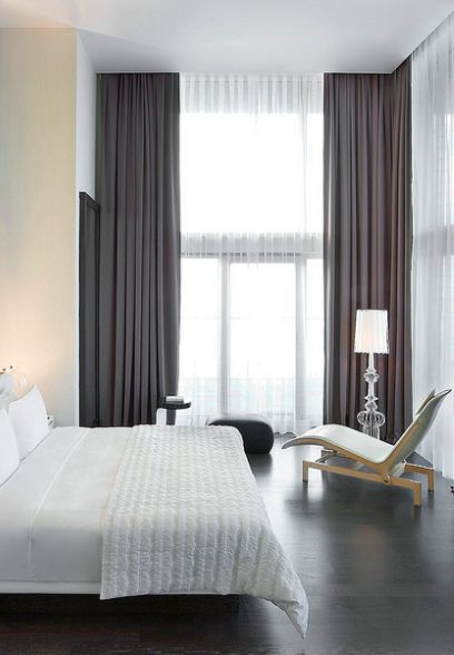 In un arredamento molto minimale si può scegliere tra semplici tende bianche non arricciate all'attacco e lasciate semplicemente cadere a terra, oppure una scelta più minimalista con le tende a pannelli verticali.