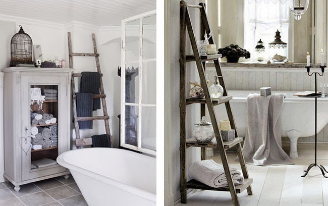 Avete un arredamento in stile country chic o provenzale, appendete una vecchia scala o semplicemente appoggiatela alla parete, potrà diventare una libreria, un porta asciugamani ecc.