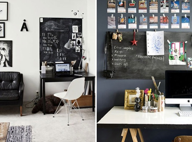 Allora la pittura lavagna è quello che fa per voi, ormai si può trovare in vari colori ed è molto facile anche crearla da soli....se si aggiunge anche uno strato di pittura magnetica è possibile appenderci quello che volete senza fare dei fori.