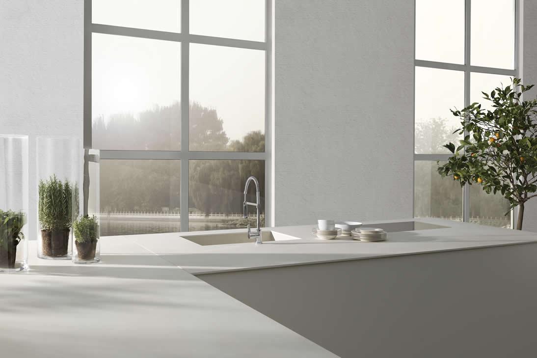 Alta resistenza agli urti e massima tranquillità in cucina nell'usare oggetti potenzialmente rischiosi per il piano di lavoro (es. pentole, taglieri, ecc.). Garantito 25 anni.