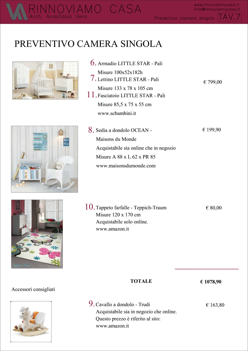 Scegli il pacchetto che preferisci, aggiungi questa opzione ed io sceglierò gli elementi d'arredamento in modo da rispettare i costi da te previsti indicando i negozi, online e non, dove sarà possibile acquistare gli elementi scelti.